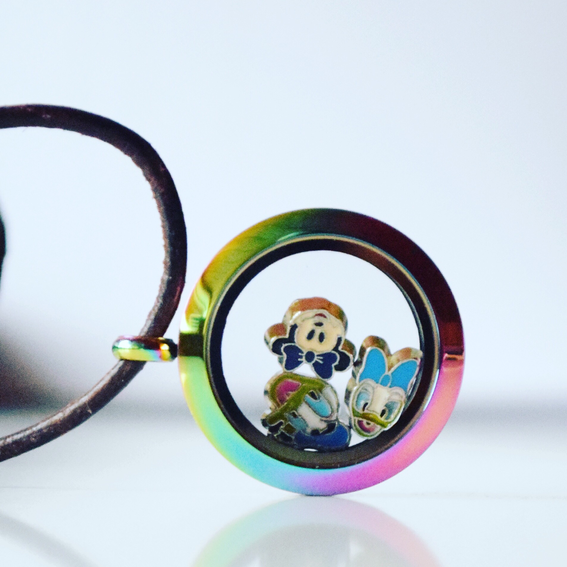 Includes a 25 mm Silver colored locket with 3 charms (see image) and a 2 mm leather chain